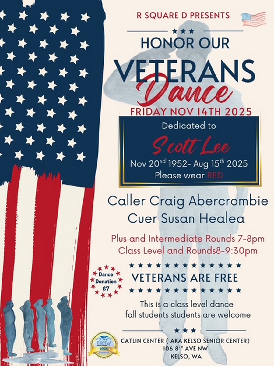 Join us in honoring our veterans at a special square dance dedicated to Scott Lee (November 20, 1952 – August 15, 2025).