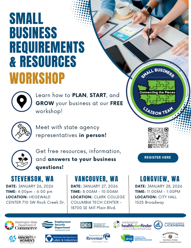 Join us for a Small Business Requirements & Resources Workshop to learn how to plan, start, and grow your business! Meet with state agency representatives in person and get free resources, information, and answers to your business questions.