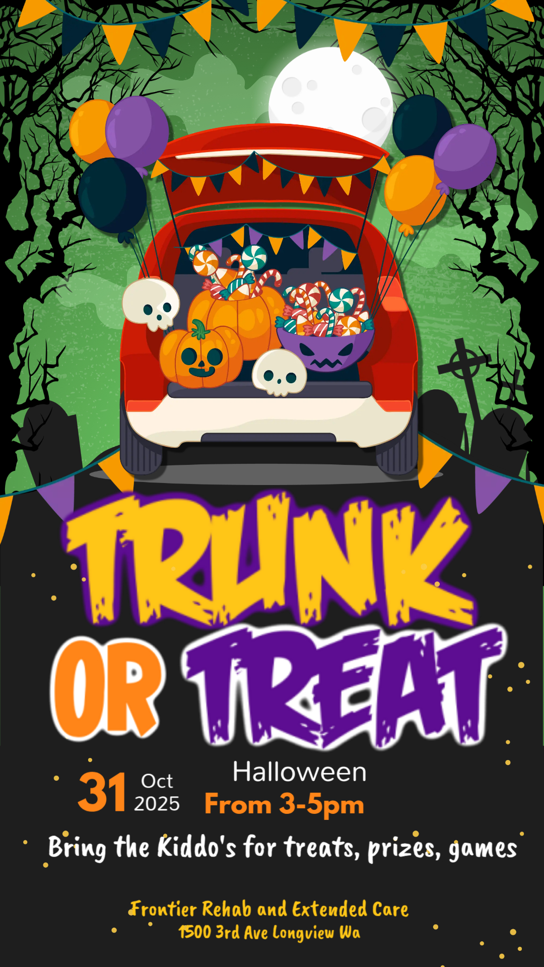 Join us for a fun-filled Trunk or Treat event where kids can dress up in their favorite costumes and collect candy from creatively decorated car trunks! Enjoy a safe, family-friendly evening with games, music, and Halloween fun for all ages!